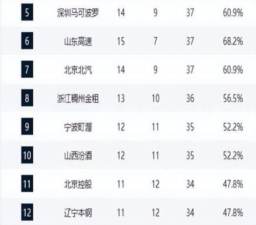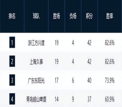 上海追平广厦,广东悄然掉队,青岛重返前4,山东第6,黑马创历史
