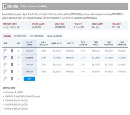 国王队则正处于一个可能的十字路口,本赛季他们战绩仅为12胜36负,面临重建压力,交易队内的核心资产以换取年轻球员和选秀权,成为一个现实选项,萨博尼斯剩余的合同价值不菲,未来两个赛季薪水合计超过9400万美元。