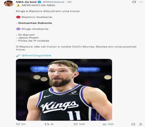 关于多伦多猛龙与萨克拉门托国王之间涉及全明星中锋多曼塔斯·萨博尼斯的交易讨论,近期在NBA交易截止日前变...